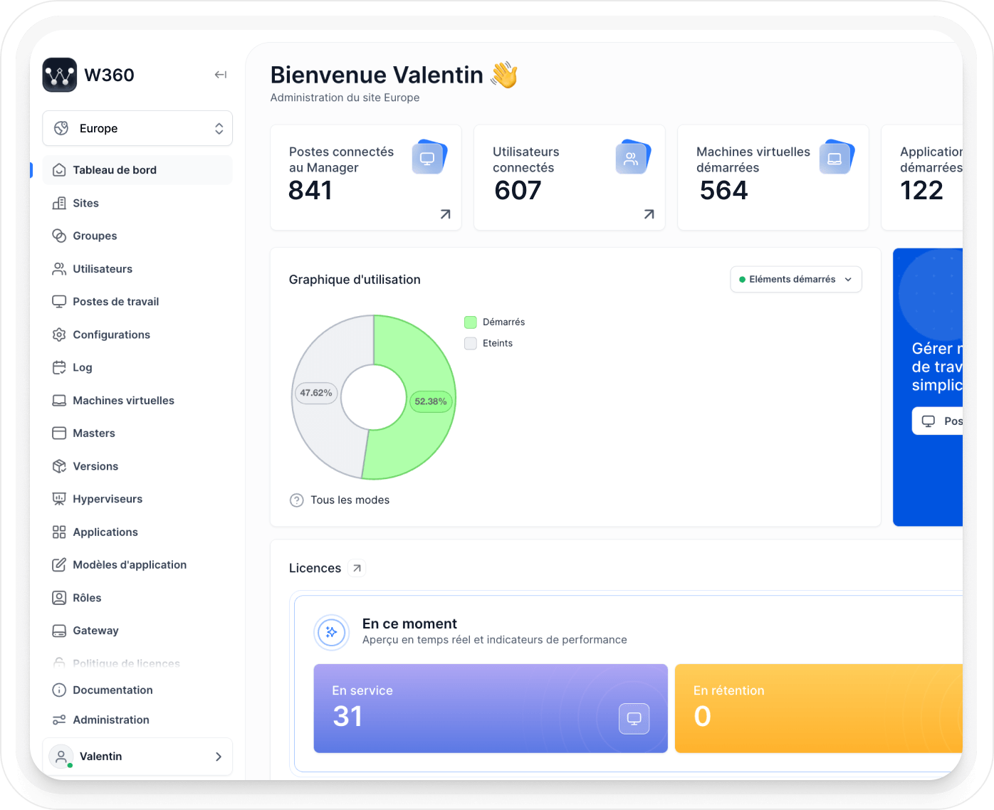 W360 centralise tout ce dont vous avez besoin pour piloter votre infrastructure informatique : visibilité, sécurité, déploiement et continuité d’activité.